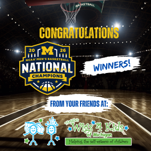 University of Michigan has supported Maggie's Wigs 4 Kids of Michigan in several ways: they formed a Student Club for our program, University of Michigan Health-Sparrow Hospital refers children to us and they host an annual Hair-a-Thon where our nonprofit is one of the beneficiaries. To our friends at University of Michigan, we congratulate the Basketball Team on their big win: 2026 NCAA Men's Basketball National Champions!
