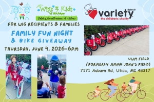 Wig recipients & families: this is a friendly reminder that we have been invited by Variety - the Children's Charity of Detroit to participate in their annual family fun night & bike giveaway on Thursday, June 4, 2026 - 6pm at UWM Baseball Field, where wig recipients can be gifted a brand new bike, helmet & lock through Variety's generosity. You also enjoy a delicious dinner, baseball game, meet-and-greets with mascots and more! If you are interested in this opportunity, please RSVP by contacting Miss Maggie at: 586-772-6656 ASAP - thank you!