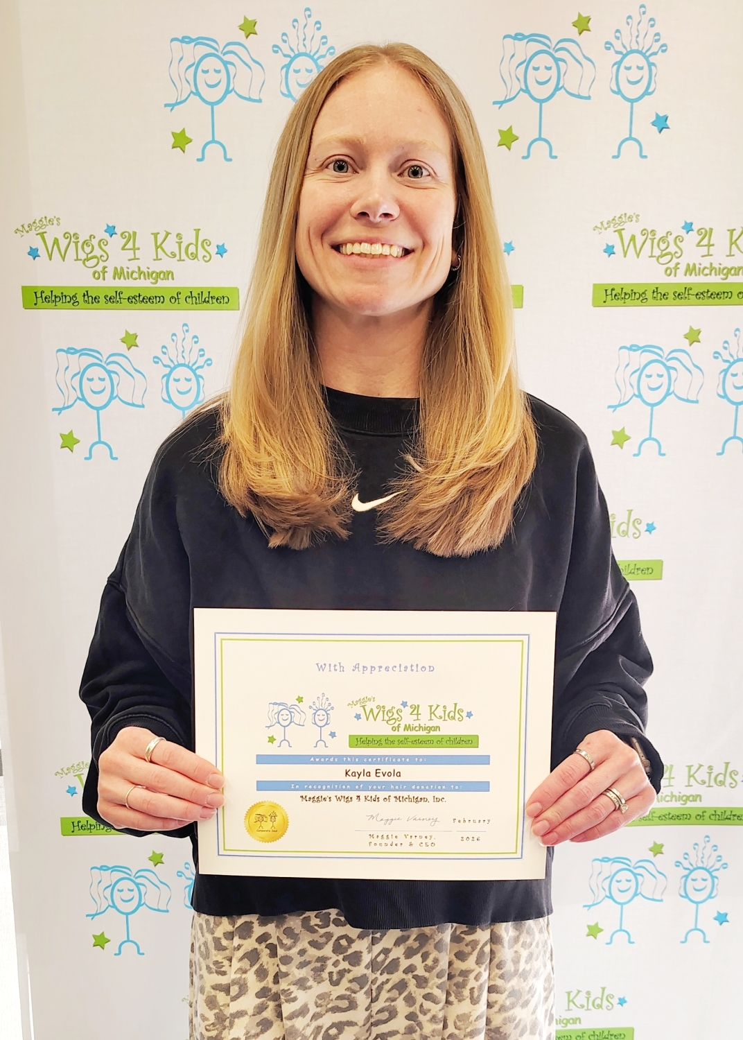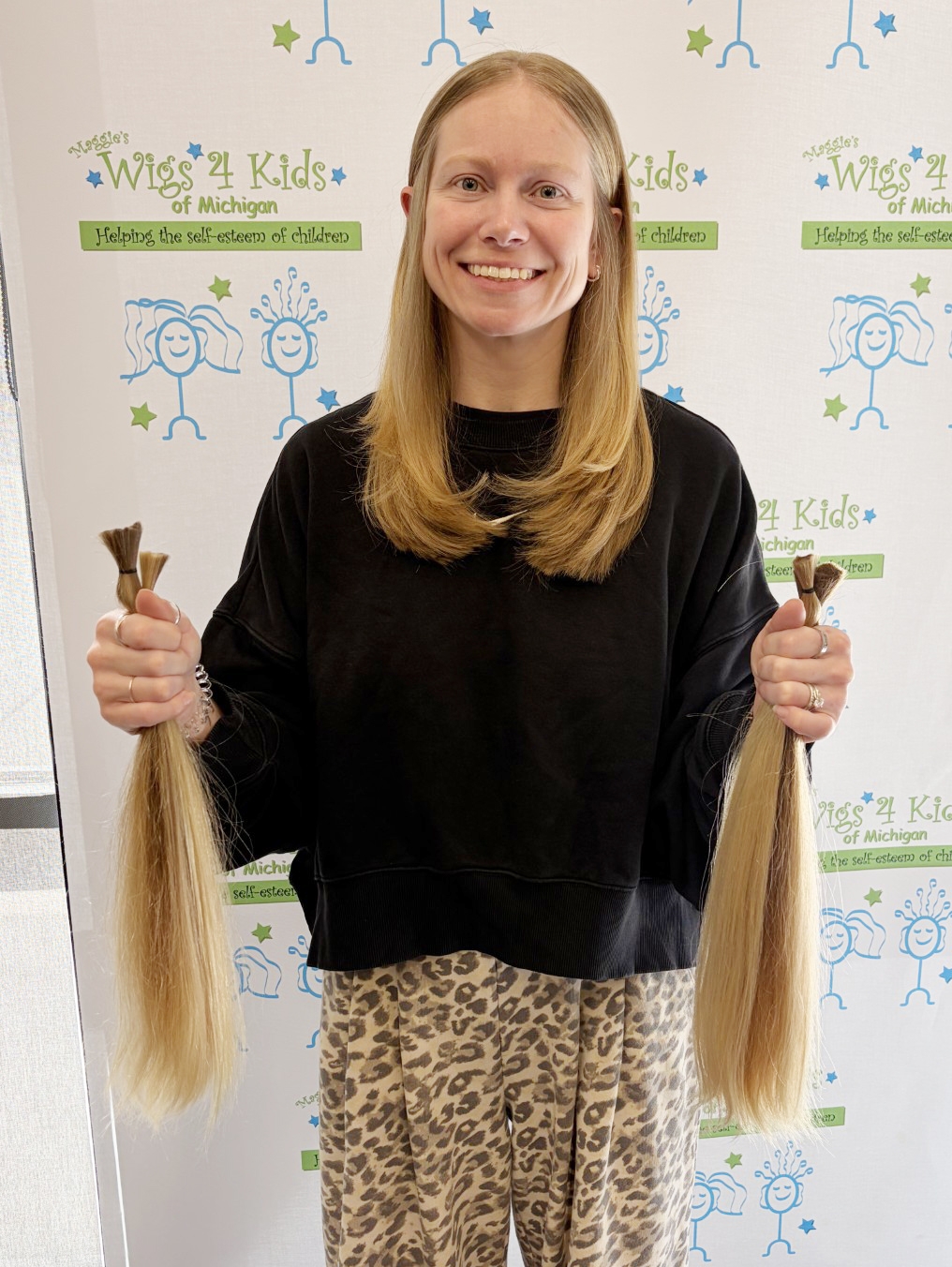 This is Kayla's third time donating her long, beautiful hair to Maggie's Wigs 4 Kids of Michigan and she chose our registered supporter, Go Green Salon to provide her haircut service. We are so very grateful that Kayla continues to grow her hair out to help the kids!
