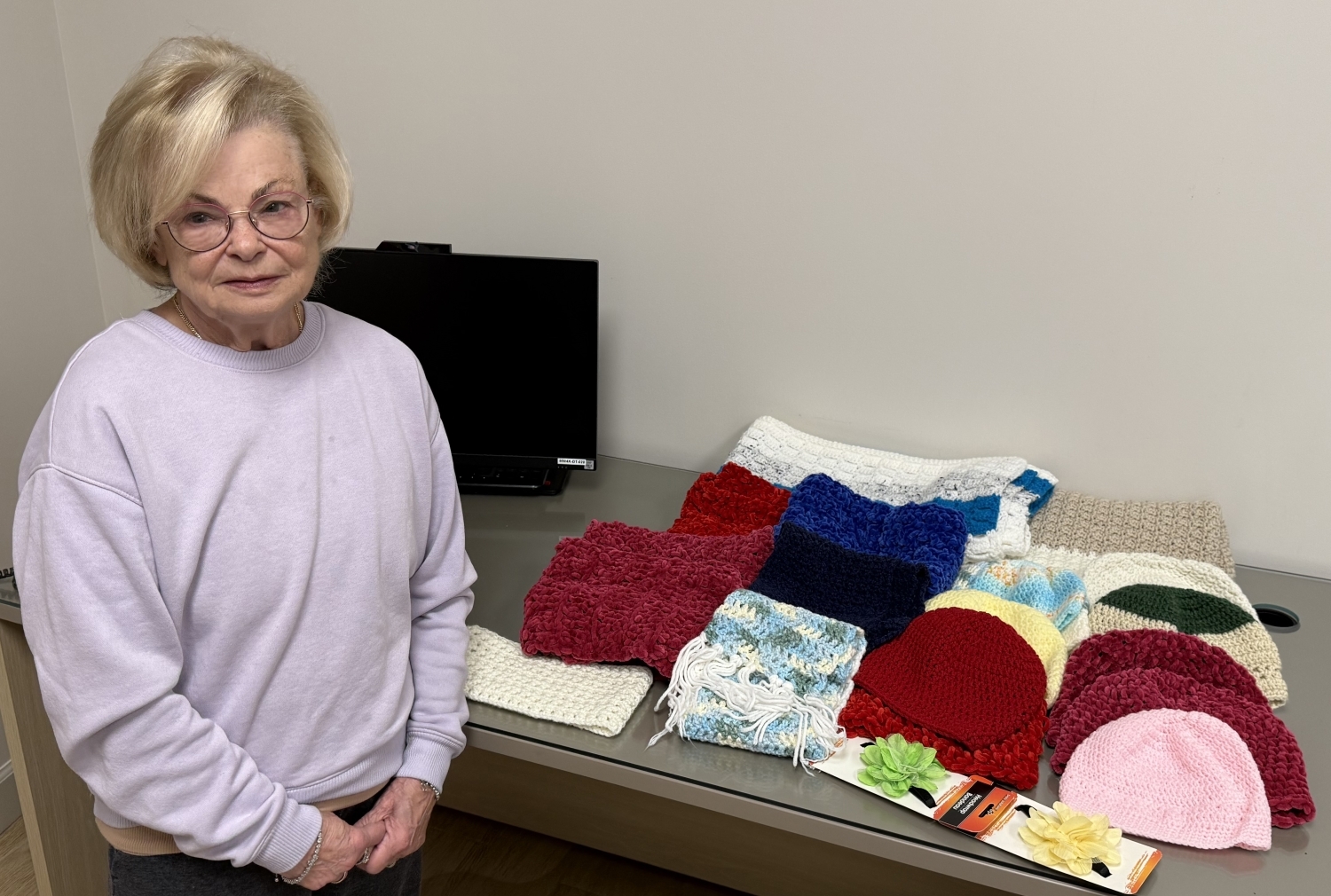 Patsy is the sister of Paul from our Business With a Heart, Paul's Plumbing. She knits beautiful hats, scarves, headbands and lap blankets to keep our kids cozy during the winter months. Patsy handcrafts these items in an assortment of colors & soft yarns for our children's comfort. We thank her for always lending her time, talent and treasure to support our wig recipients!