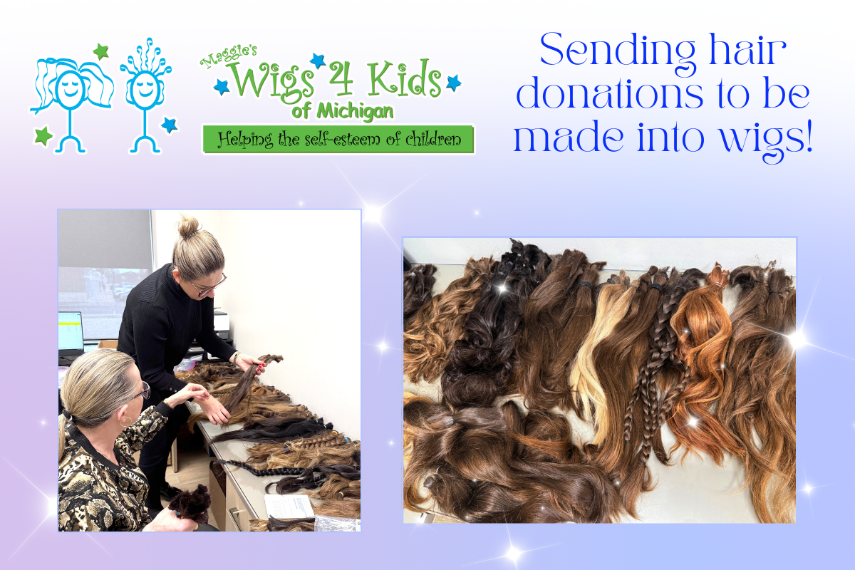 When the finished products arrive to our Maggie's Wigs 4 Kids of Michigan Wellness Center, we style the wigs based on the requests of the children and then schedule their fitting appointments. Thank you to our wonderful donors!