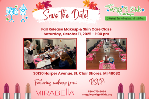 Dear wig recipients & families: a friendly reminder…our next makeup & skin care class for Maggie’s Wigs 4 Kids of Michigan, focused on the new fall release of products from Mirabella Beauty is being held on Saturday, October 11, 2025 -...