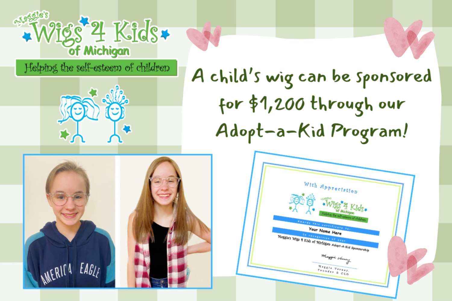 We are so very grateful for the caring individuals, businesses, civic groups, clubs, churches, schools and foundations who help sponsor the cost of a child's wig & support services through our Adopt-a-Kid program. If you donate $100 each month for the year, you'll reach the $1,200 needed for sponsorship. ???? Each sponsor receives a certificate of appreciation, thank you letter from the child and their family and before & after photos with parent/guardian permission. https://www.wigs4kids.org/how-you-can-help/sponsor-a-kid.html