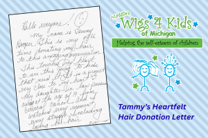 Melody researched Maggie’s Wigs 4 Kids of Michigan and chose our organization since we provide wigs & support services at no charge to the children we serve. She was so happy to grow her hair out, knowing it would make a difference for a child...