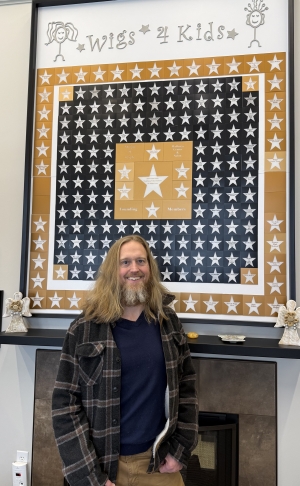 A phenomenal hair donation from Tim in St. Clair Shores! He had his long hair cut at Go Green Salon, a separate business located inside our Maggie's Wigs 4 Kids of Michigan Wellness Center. We don't get enough of this color and are grateful Tim chose our organization as his hair will be walking around on a kid's head right here in our community!