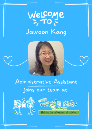 Heartfelt story: Jawoon was first introduced to Maggie's Wigs 4 Kids of Michigan by our friends at Impact 100 Metro Detroit. English is her second language and she has been volunteering for a year so she would be around people, grow her skills & become more marketable. Jawoon is gracious, wonderful & respectful - she helps wherever needed across departments; especially with our hair hats & hair donations. She has a beautiful spirit & kind soul - we're honored to welcome her to our team as an administrative assistant.