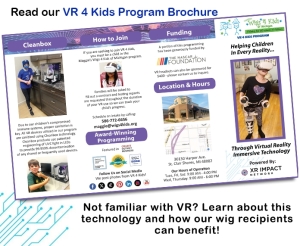 Wig recipients & families who are currently in our Maggie's Wigs 4 Kids of Michigan program are encouraged to sign up for VR 4 Kids: there are many benefits of utilizing a virtual reality headset: taking care of digital pets, achieving pain...
